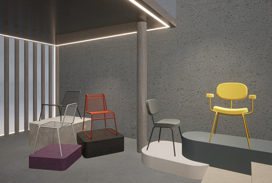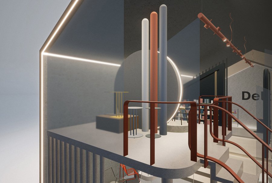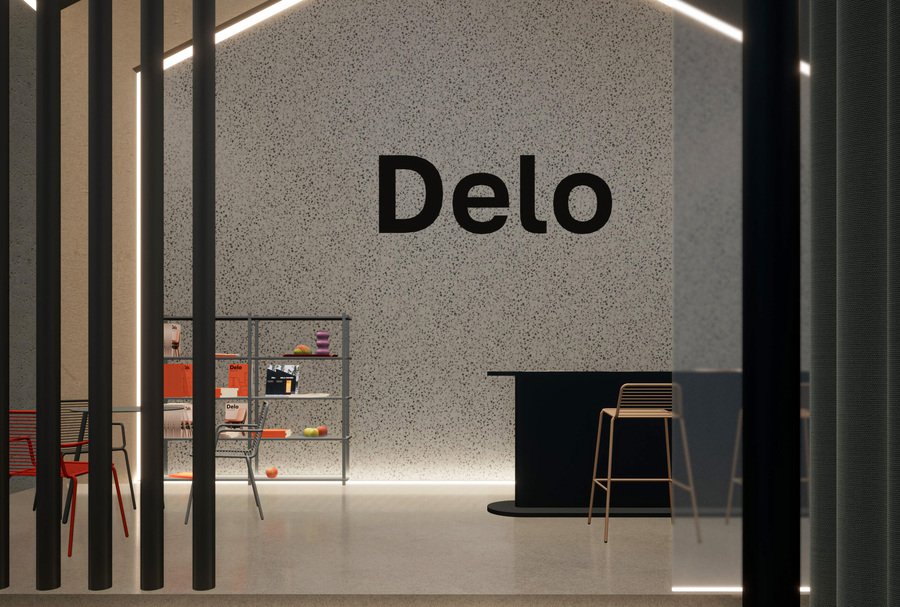 Проект представляет собой концепцию выставочного стенда для бренда Delo, который является производителем мебели, предметов быта, одежды, а также домов.