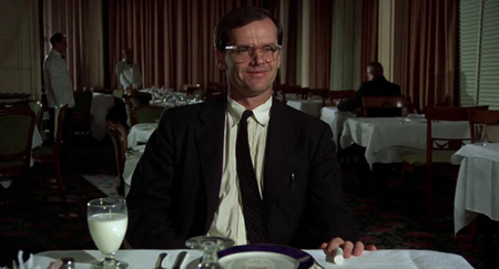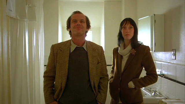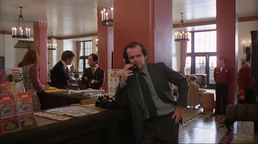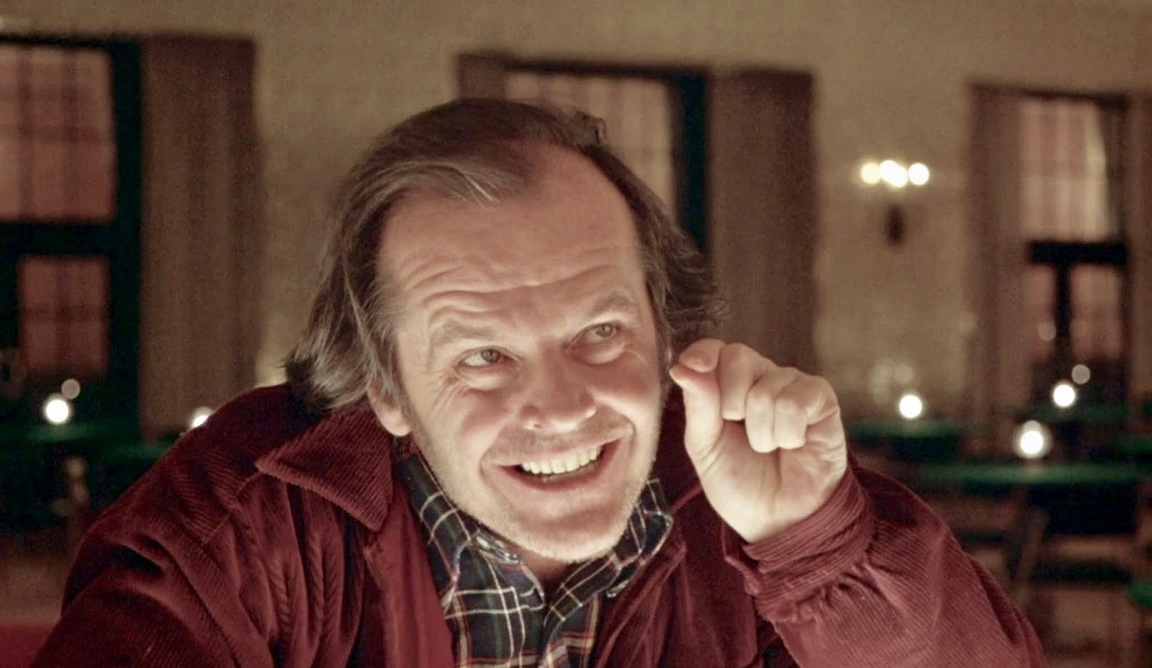 Это, пожалуй, одно из его предпоследних выступлений в роли Джека Торренса, школьного учителя, ставшего писателем, которому вместе со своей семьей нужно зимой ухаживать за отелем с привидениями, но в процессе он сходит с ума. Хотя мы увидим его в его хорошо узнаваемой ветровке и слаксах, в фильме он наденет два разных костюма: один, когда он проходит собеседование на должность смотрителя у руководства отеля, и другой в первый рабочий день, когда он приезжает со своей семьей.
