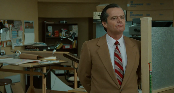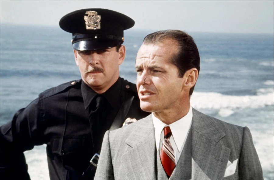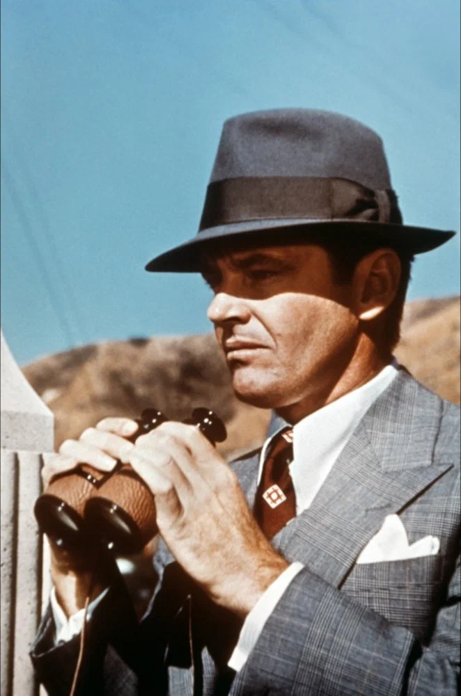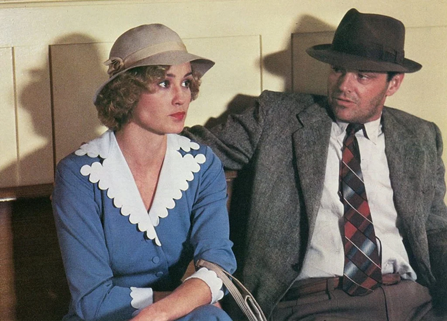 Это одна из его самых хорошо известных ролей в карьере и принесшая Николсону ещё большую славу — он играет частного детектива по имени Джейк Гиттес в этом детективном фильме в стиле нео-нуар. Он менял свои наряды не менее восьми раз по ходу фильма. Множество светлых костюмов-троек с аккуратными деталями, такими как пояс и складки на спине (без отверстий), и рубашек с длинными воротничками, которые в основном ассоциируются у нас с фигурами мафии. Современные костюмы по сравнению с ними кажутся чрезвычайно минималистичными. Плюс пара красивых шляп с полями из соломы и фетра.