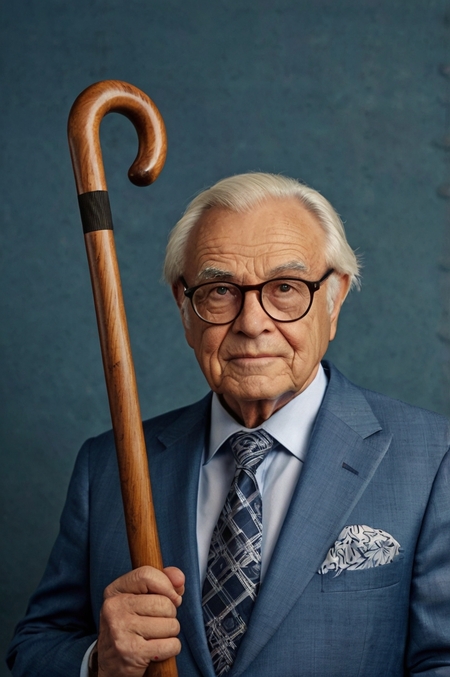 prompt for pic. № 1: Generate a newborn baby girl wrapped in a pink diaper prompt for pic. № 2: Generate an elderly man in a blue suit with a tie and a cane