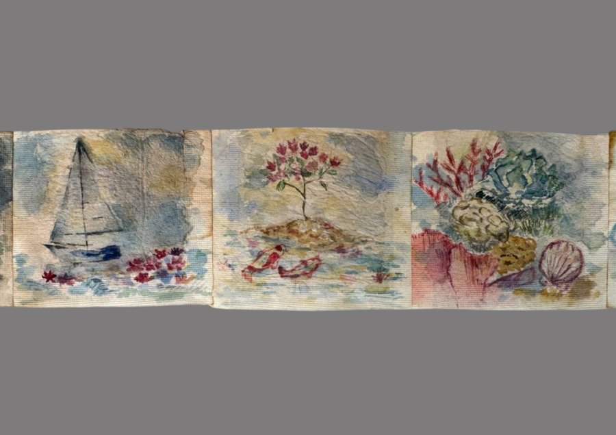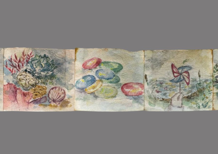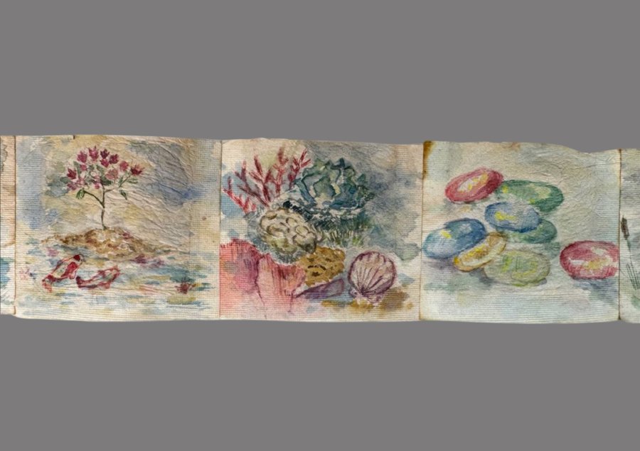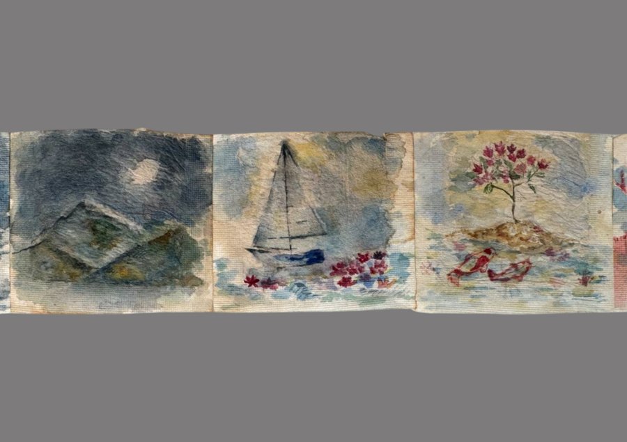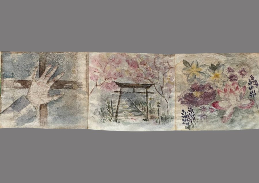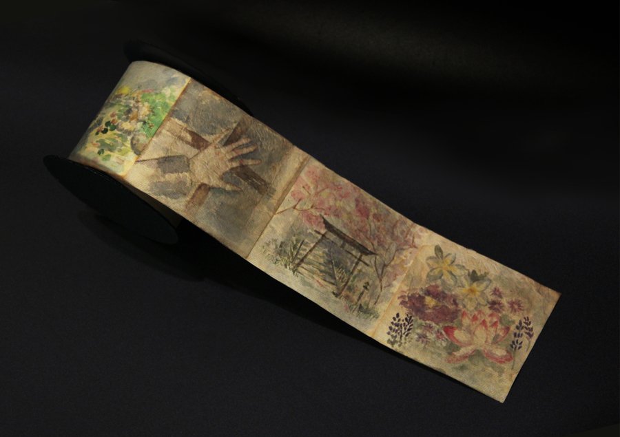 иллюстрации к песням японской певицы ichiko aoba, вдохновленные мировоззрением ваби-саби. выполнены на чайный пакетиках с отсылкой на традиционную японскую бумагу «васи». оформлены в крафтовую катушку, на корпус которой оформляют названия альбомов.