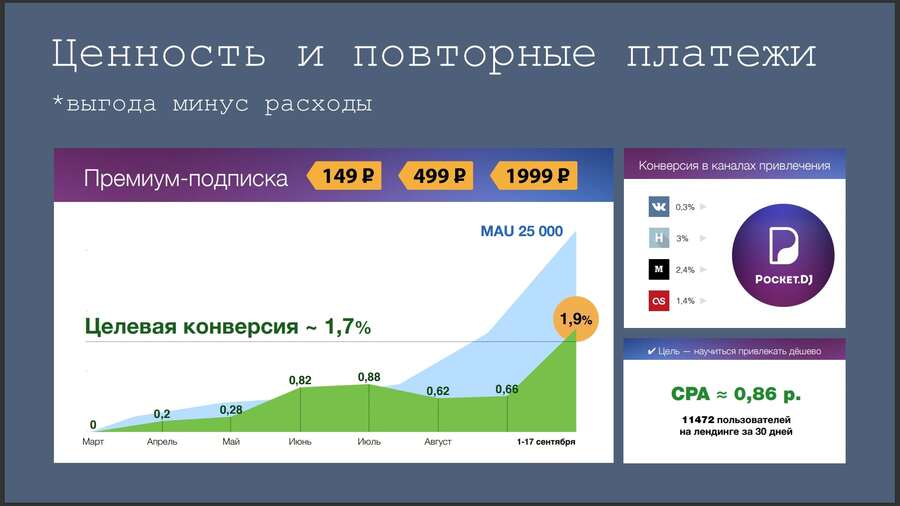 Очень важно понимать, какая проблема у пользователя, c которым ты работаешь. Дмитрий понял, что у многих людей просто не хватает времени, чтобы составить новый плейлист для пробежки, например. И они готовы заплатить деньги, чтобы получить новый плейлист. Но при условие, что человек, предоставляющий такую услугу, достаточно авторитетный или из известной компании.