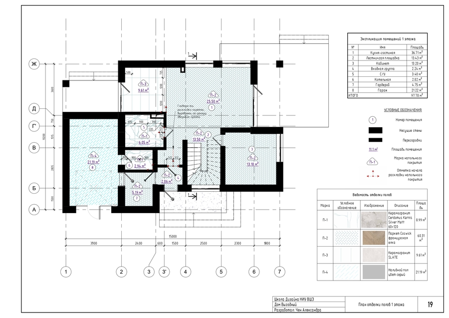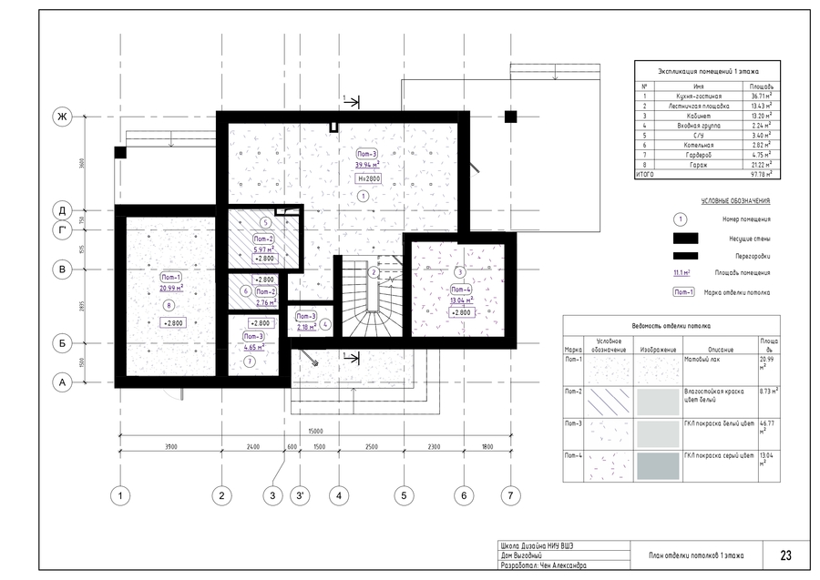 Планы отделки полов, стен, потолка