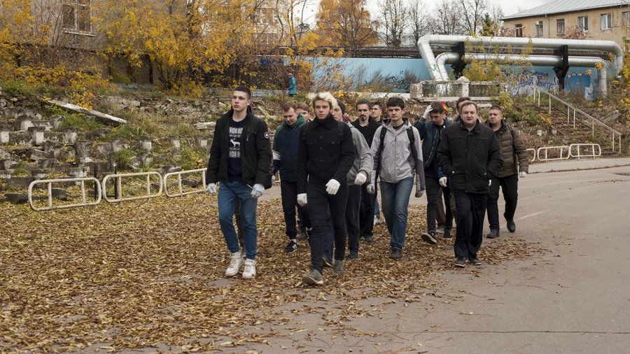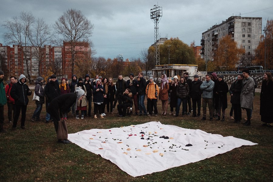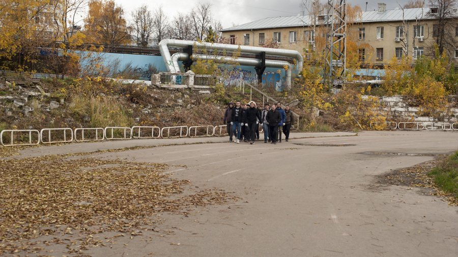 Желание припомить привело нас к созданию партитуры действия на местности — полуразрушенном стадионе в центре города. «Водник» имеет довольно специфическое расположение — он находится в центре, однако со всех сторон окружен плотным жилым массивом и тонкой прослойкой трущоб и гаражей. Далеко не все нижегородцы знают о его существовании. Он напоминает бесхитростное убежище.