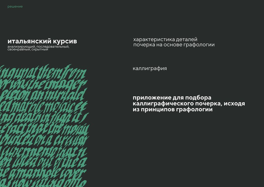 Пластичность и характерность почерков, которые можно внедрять в проект в измененном виде согласно заданой теме, передавая гипотезы и метафоры.