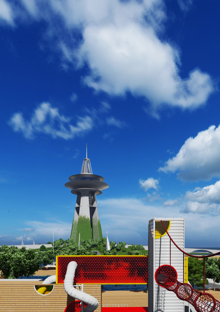 Основной концепцией формообразования детской площадки является морской контейнер, который представляет собой конструктивный модуль. Детская площадка проектируется для группы детей от 6 до 12 лет. Площадка разделяется на несколько зон по функциональному наполнению.
