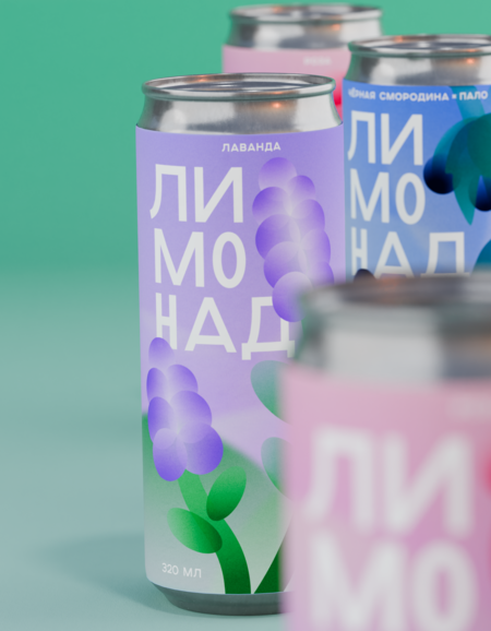 Дизайн упаковки для серии авторских лимонадов «ВкусВилл» со вкусами лаванды, розы,
