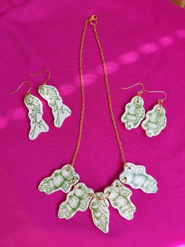 2013 is the year I began my activities to «rescue» accidentally broken dishes. The photo shows a former broken plate from the Krasnodar porcelain and earthenware factory «Chaika». Instead of being thrown away, it became jewelry.