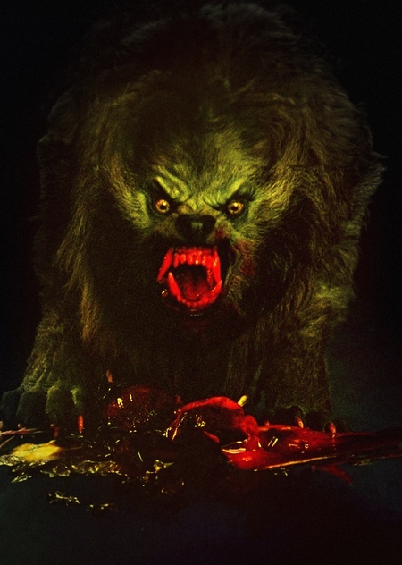В этом случае команда по специальным эффектам не прибегала к созданию полноценной аниматроники. Идея реализации подвижности пришла Рику Бэйкеру. Он вдохновился детской игрой, где ты должен передвигаться на руках, пока тебя держат за ноги, что и стало основой для конструкции, к которой добавились дополнительные элементы. Вервульф состоял из двух частей: костюм для передней части четвероногого и тележка с колесами для задней, а прикрепленные ноги, как и голова, управлялись марионеточно. Устройство включала в себя шарнирное тело животного, разработанное Дугом Бесуиком, а также доску под наклоном поддерживающую исполнителя, который, надев костюм, изнутри управлял передними лапами. Для крупных кадров голову монстра просто надевали на руку и контролировали движение челюсти.
