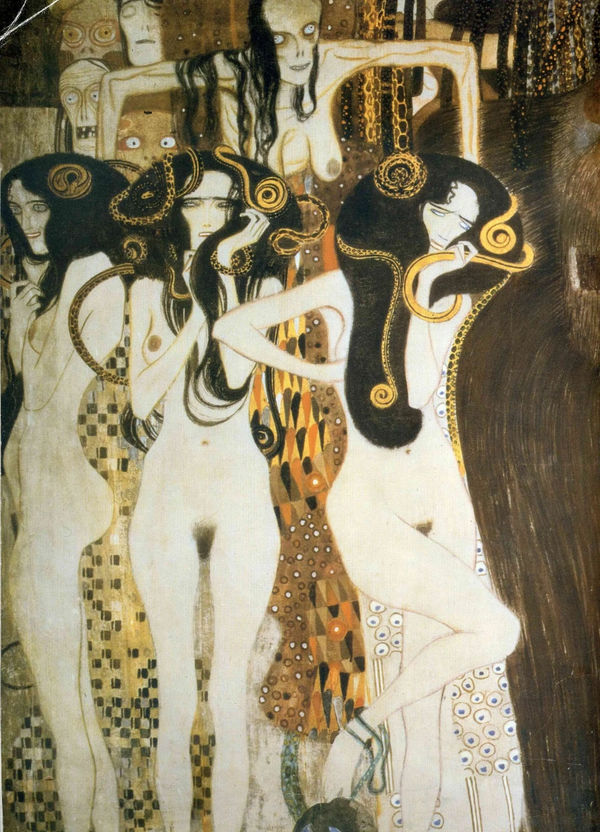 «Бетховен Фриз. Три горгоны: болезнь, безумие и смерть» (фрагмент) Фреска, 1902