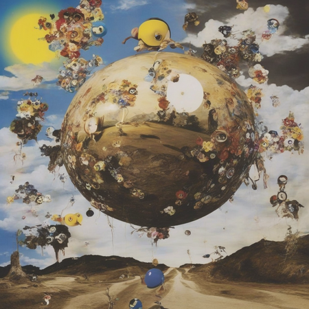 photo collage in TAKASHI MURAKAMI style, The Persistence of Memory (Salvador Dalí)