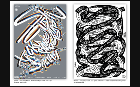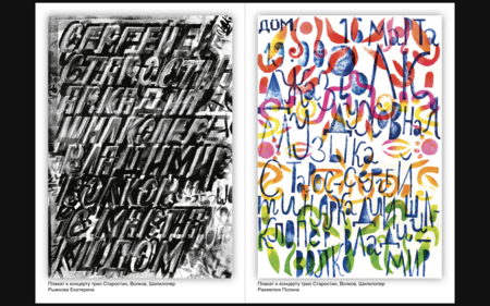 Звучание композиции играет большую роль в формировании идеи плаката, выборе шрифта или графического приёма. Слушая музыку, студенты передают ритм, тональность, характер звучания через текстуры, типографику, иллюстрации.