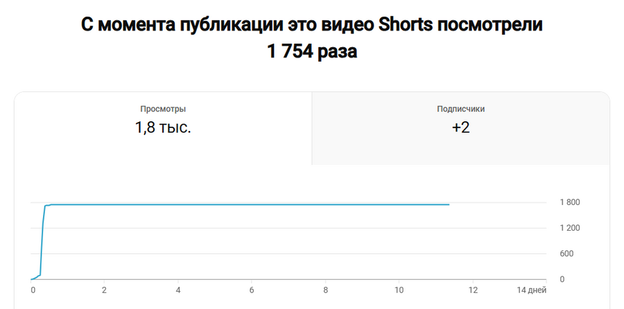 Просмотры: 1,8 тыс. (+1 754 с момента публикации). Прирост подписчиков: +2. Уникальные зрители: 513 из 523 заинтересованных просмотров.
