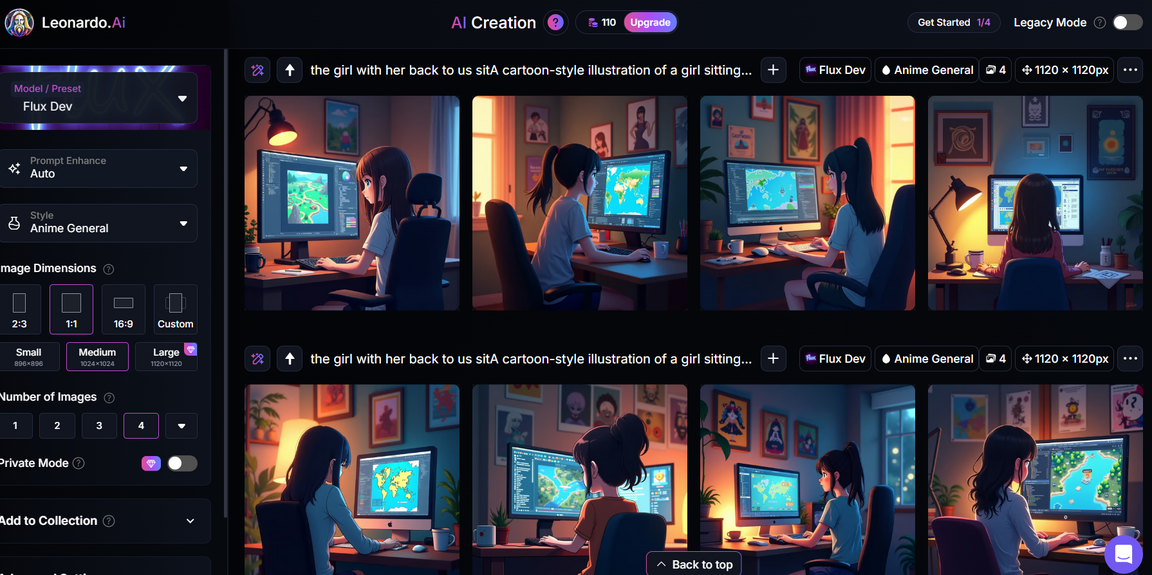 Для визуального сопровождения я использовала нейросеть Leonardo.Ai, с помощью которой сгенерировала изображения, подходящие к теме статьи: девушка за компьютером, работающая над игрой, уютная атмосфера, немного мультяшный стиль — именно так я представляю процесс создания. ИИ помог реализовать образы, которые раньше были только у меня в голове.