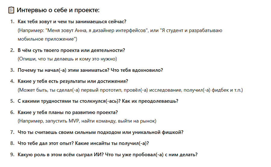 На этапе написания я обратилась к помощи искусственного интеллекта (ChatGPT). Он помог мне: