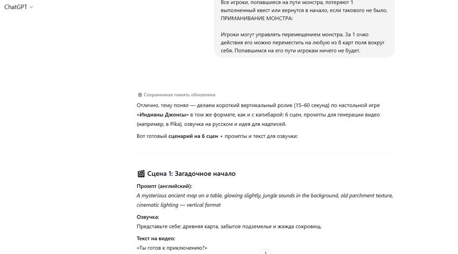 ChatGPT — для написания сценариев, описаний сцен и озвучки.