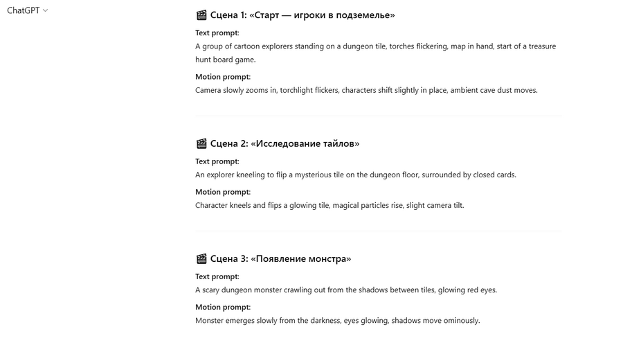 Процесс создания видеороликов стал неотъемлемой частью визуального оформления и продвижения настольной игры. Это был не просто технический этап, а полноценная творческая задача — передать атмосферу, механику и идею игры в коротком, но выразительном формате. Основной фокус был на том, чтобы с помощью нейросетей показать суть игрового процесса и вовлечь зрителя с первых секунд.