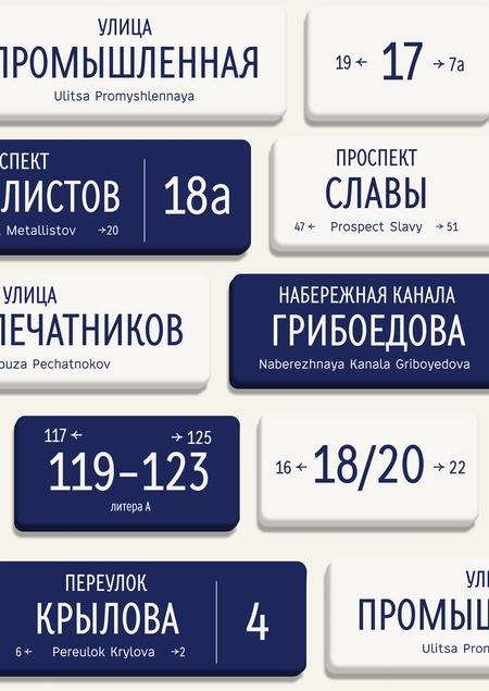 St.Sign был создан для новой единой адресной навигации в Санкт-Петербурге, поэтому в рамках проекта была создана система адресных табличек использующих этот шрифт.