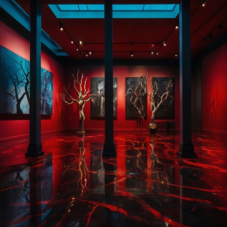 Изображение выставки, созданное с помощью ИИ / промпт помещения выставки.