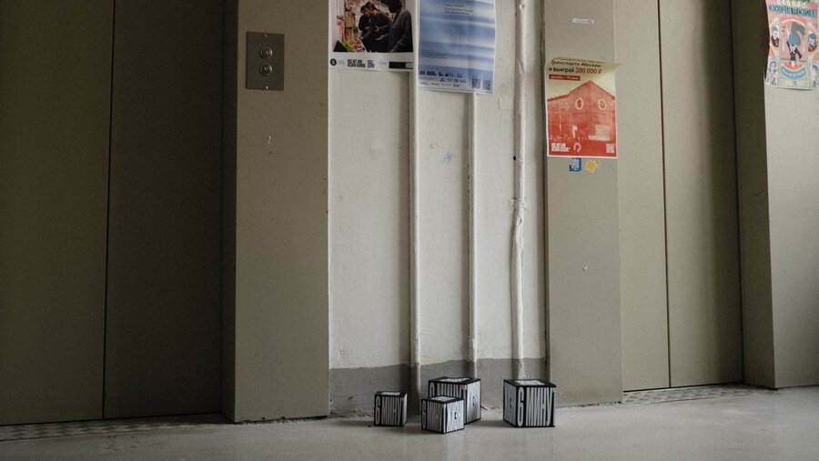 С целью создать максимально дискомфортные условия для участников эксперимента для объекта была выбрана форма куба 2×2 метра.