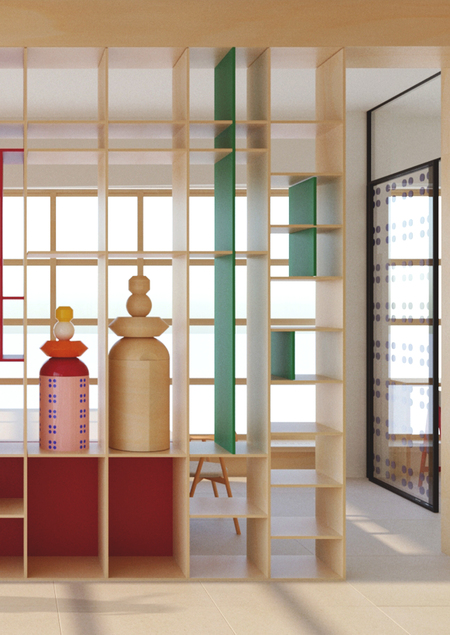 Проект посвящен разработке дизайна интерьера для шоурума Kotok toys. Интерьер основан на идее того, что все начинается с бруска. В помещении основным материалом для всех объектов и мебели является фанера. Яркие цвета, которые присутствуют в интерьере — цвета из фирменного стиля Kotok toys.