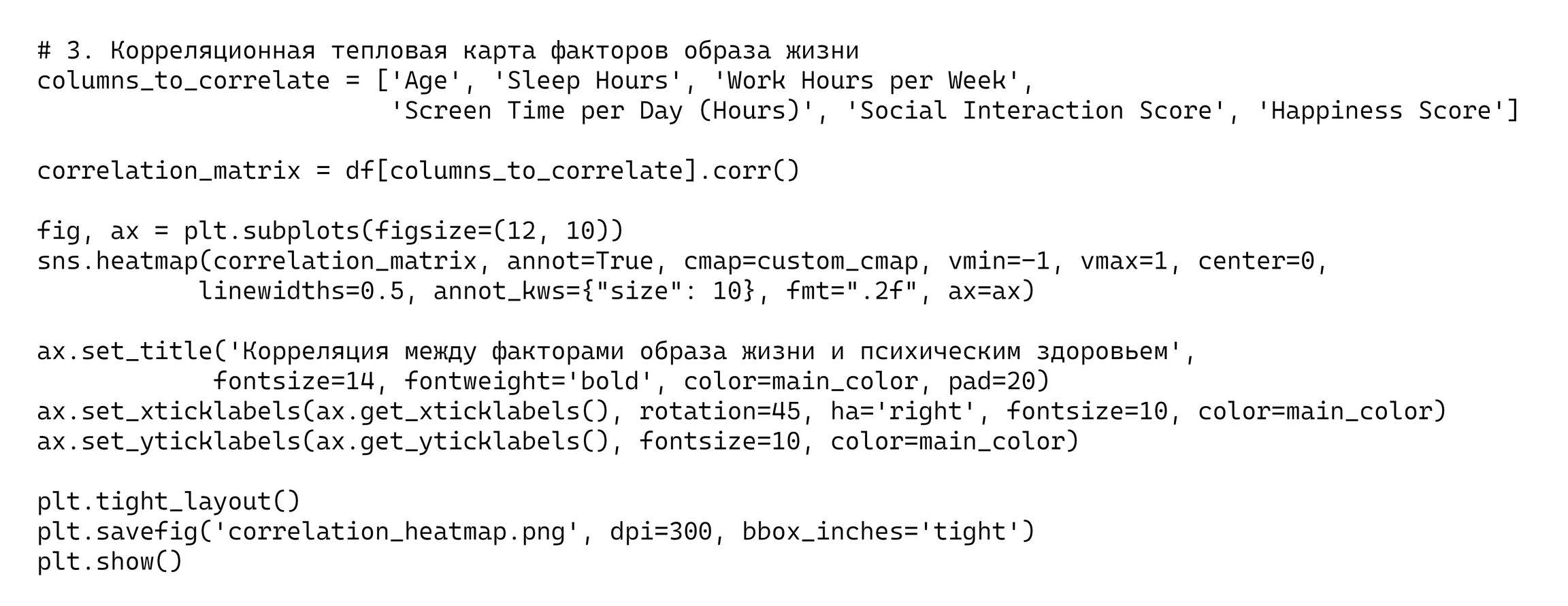 3. Корреляции между факторами образа жизни и психическим здоровьем
