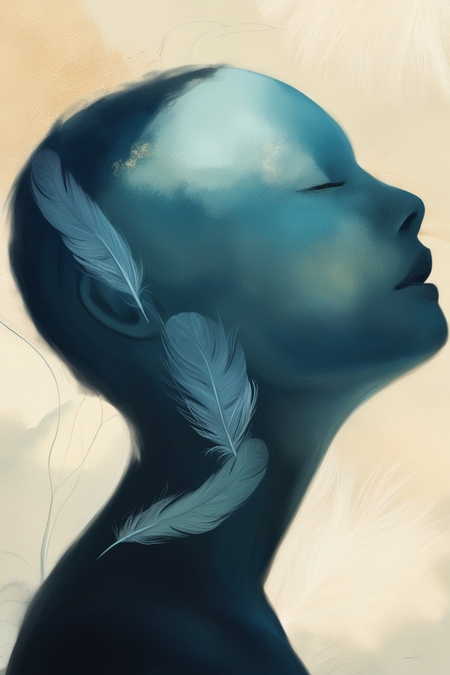 Обложка: Leonardo.Ai Promt: painting of a woman with blue head and white feathers inspired by Anna Dittmann, soft digital painting, girl with feathers, low detail. beautiful digital illustration, dreamy digital painting, blurry and dreamy illustration. Serene and artistic profile of a person with smooth skin of deep blue color, closed eyes and a gentle expression. Light blue feathers adorn the neck, giving the image softness. The background is a warm, muted beige with abstract shapes reminiscent of feathers, which enhances the ephemerality of the composition.
