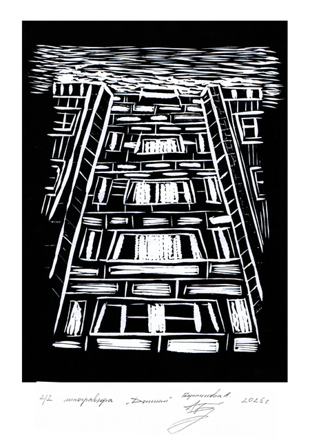 В этом цикле работ представлена серия линогравюр, изображающих дома моего родного города — символы уюта, безопасности и родных мест. Каждое изображение основано на воспоминаниях из детства, в которых дома становятся не просто зданиями, а отражением той атмосферы, которая окружала меня в те годы. Эти работы — не изображения архитектуры, а отражение эмоций, связанных с местами, где я выросла, где царила любовь, забота и первое понимание жизни.