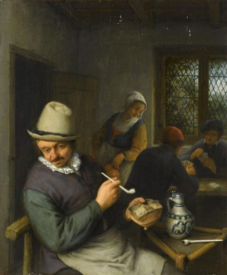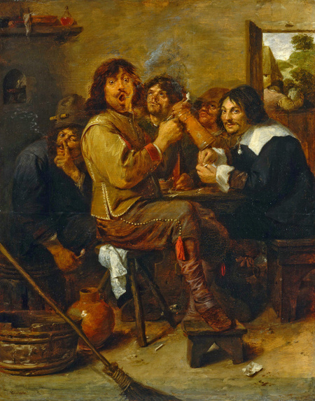 Однако, в работе «Курильщики» (1644) уже видно, как мужчина справляет нужду. Также на стене висит розыскное изображение преступника, а по форме носа и шляпы можно предположить, что это один из мужчин из толпы курильщиков. Его бытовые работы с тавернами малочисленны, но в них прослеживается неклассическая эстетика, изобличающая лгунов и невежд.