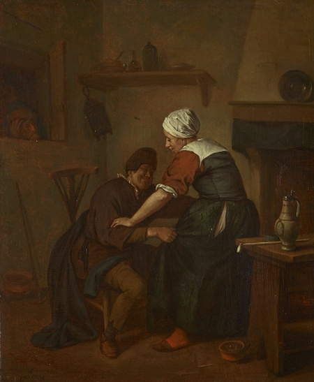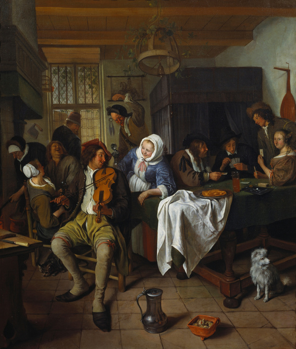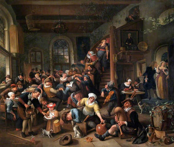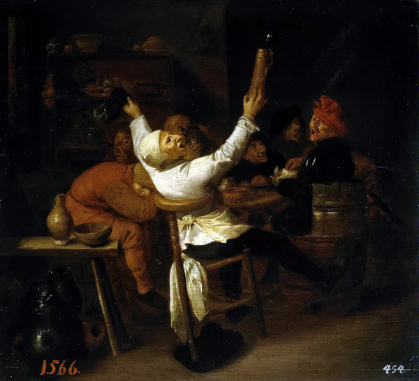 Искусство голландца Адриана Яна ван Остаде стало ярким отражением порочности и безнравственности общества, завсегдатаев таверн и трактиров. Перед нами многочисленные изображения прокрастинирующих людей, идущих за своими желаниями и инстинктами. Помимо того, что художник подробно воссоздает пространства заведений, он обращается к многоплановости композиций, показывая нам по «несколько историй»: кто-то играет в карты, кто-то пьет, кто-то дерется и так далее.