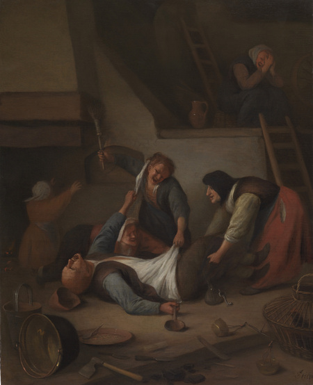 Ян Стен 1- Драка крестьян. Женщины, волочащие мужчину. 1673. 2-Мужчины и пьяная женщина. 1665