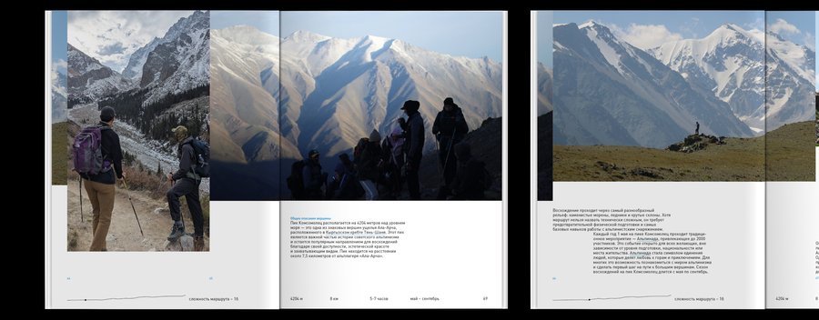Визуальное путешествие по самым знаковым вершинам Тянь-Шаня. Книга знакомит с шестью пиками гор: Пионер (4020 м), Электро (4080 м), Агитаторов (4150 м), Комсомолец (4204 м), БОКС (4240 м), Учитель (4540 м), раскрывая их природную мощь, уникальные маршруты и историческое значение.