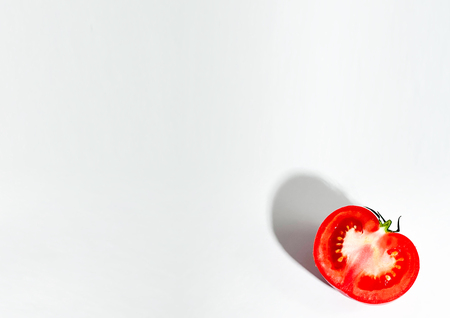 зин делится пополам крупным планом сердцевины первая часть: целый помидор вторая часть: только половинка