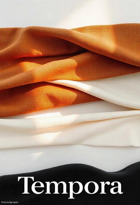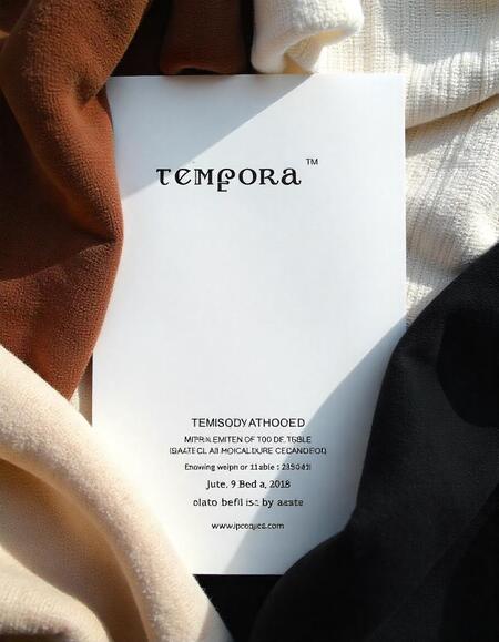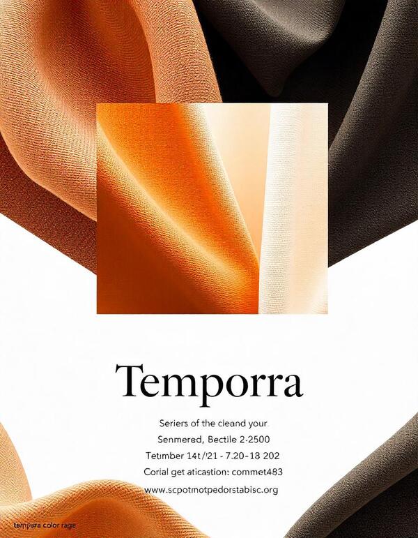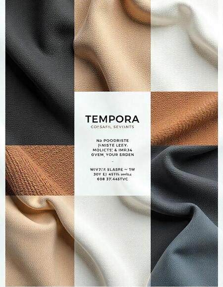 Промт: Poster for the Tempora company, which uses scans of fabric textures, brown, beige, white, black shades. The company develops fabrics. Minimalist style