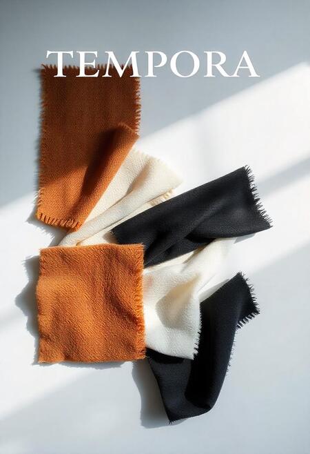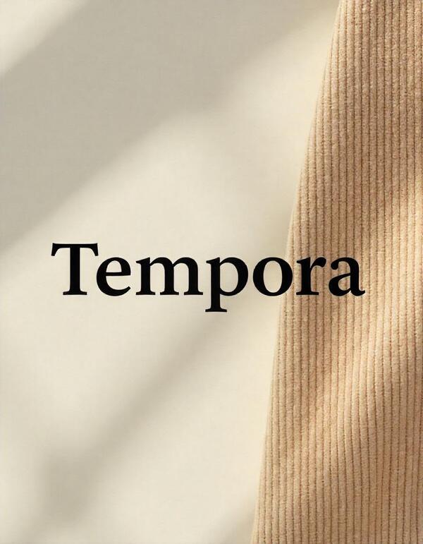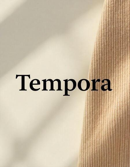 Промт: logotype for the Tempora company, which uses scans of fabric textures, brown, beige, white, black shades. The company develops fabrics. Minimalist style
