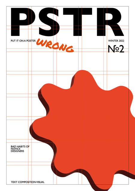 Тема зимнего (WINTER 2022) выпуска «PUT IT ON A POSTER WRONG» посвящается основным ошибкам начинающих дизайнеров и разделена на три подтемы — текст (работа со шрифтами), композиция (сетка, количество воздуха в работе) и визуал (умение сочетать цвета и стили).