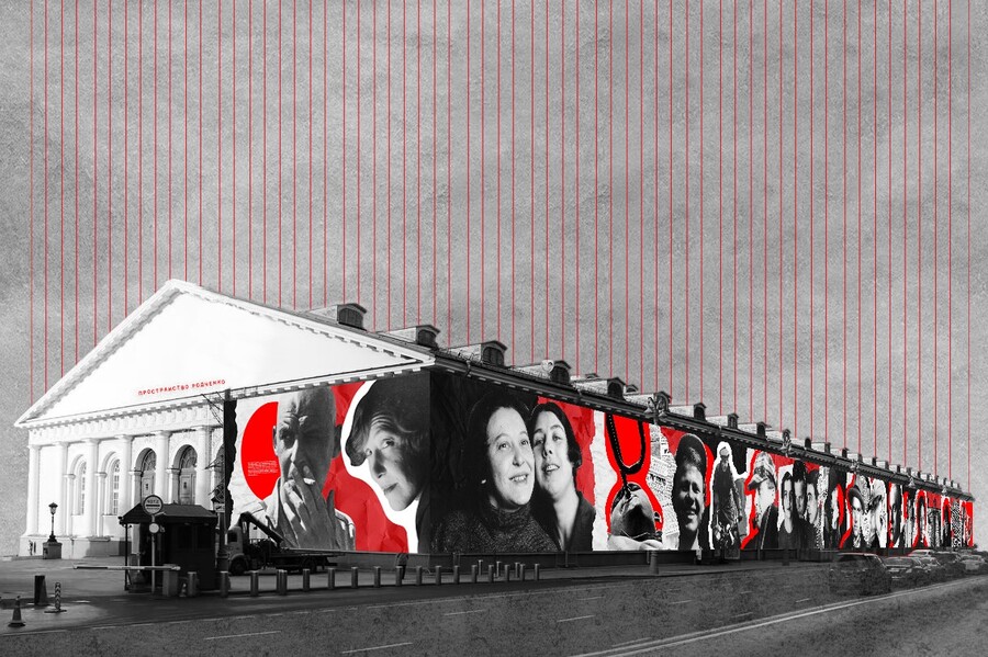 Временный фасад к выставке «ПРОСТРАНСТВО РОДЧЕНКО»
