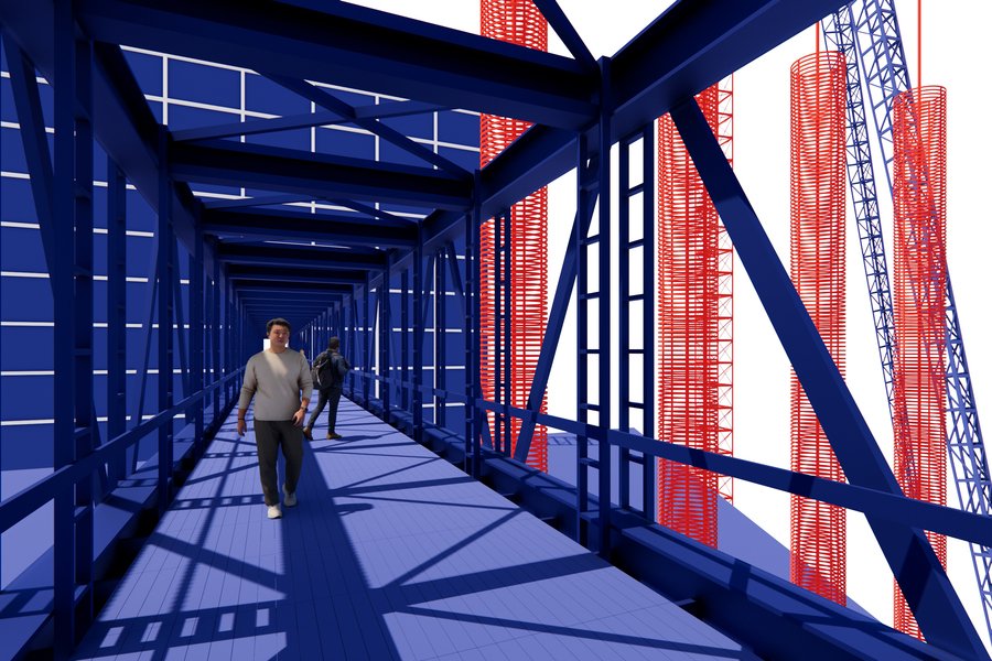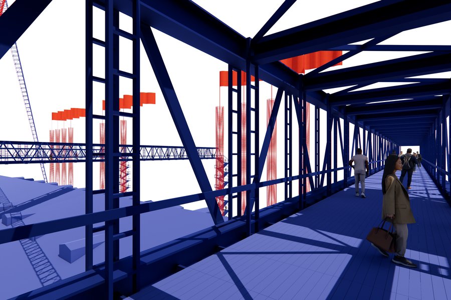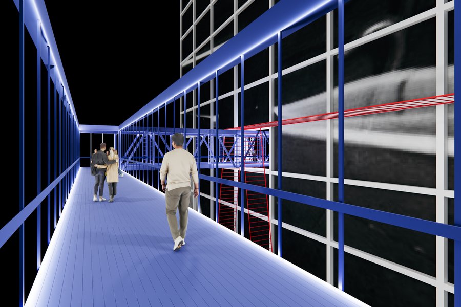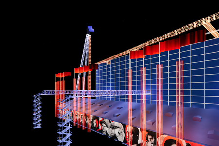 Временный фасад включает в себя графический фасад и архитектурную часть