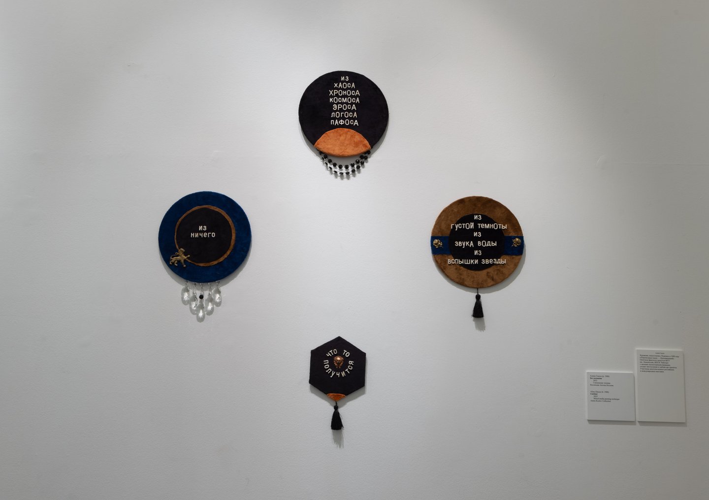 Выставка не обошлась без текстово-визуальных ребусов, китча и иронии соц-арта. Поиски московского романтического концептуализма в лице Игоря Макаревича и Елены Елагиной соотносятся с абсурдными «бесполезными безделушками» Алины Глазун.