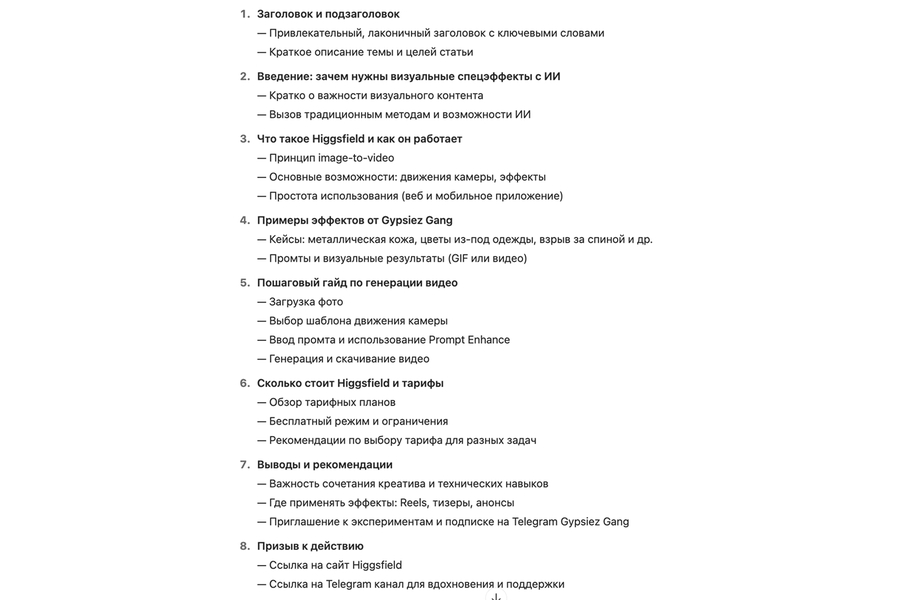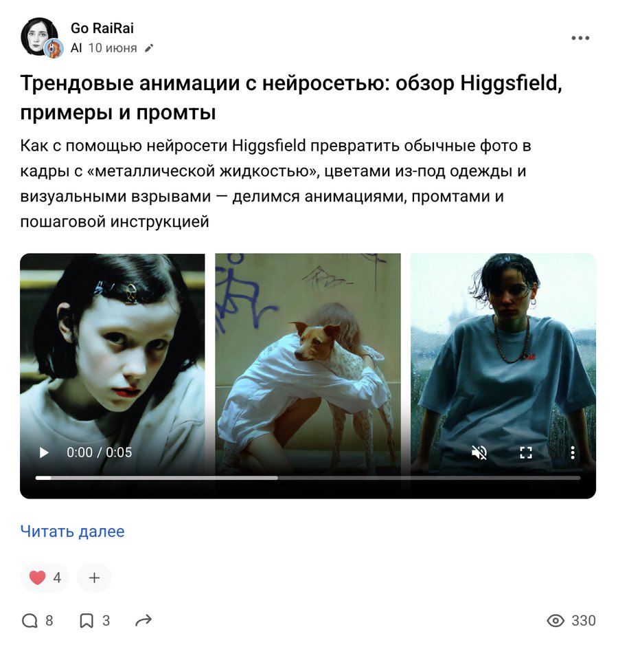 — Статья с обзором Higgsfield и примерами трендовых эффектов, включая ссылки на генерации и промты, была опубликована на VC.ru.