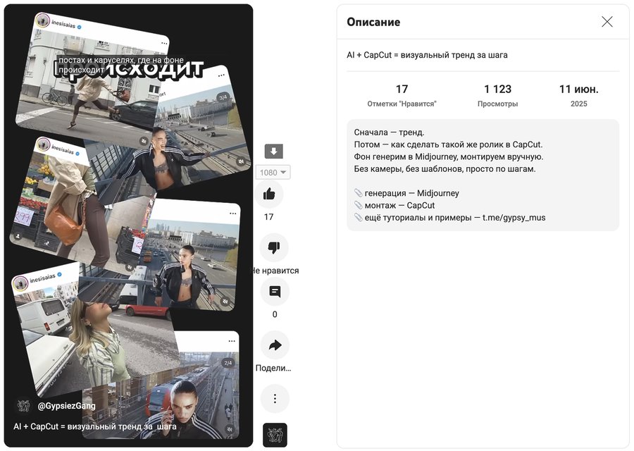 — Обучающее видео по тренду, первоначально сделанное для Нельзяграм Reels, было перепубликовано в формате Shorts и VK Клип: • текст под видео адаптирован под короткую ироничную подводку • убраны хештеги, характерные для Reels Сюжет, монтаж и визуальный стиль не менялись.