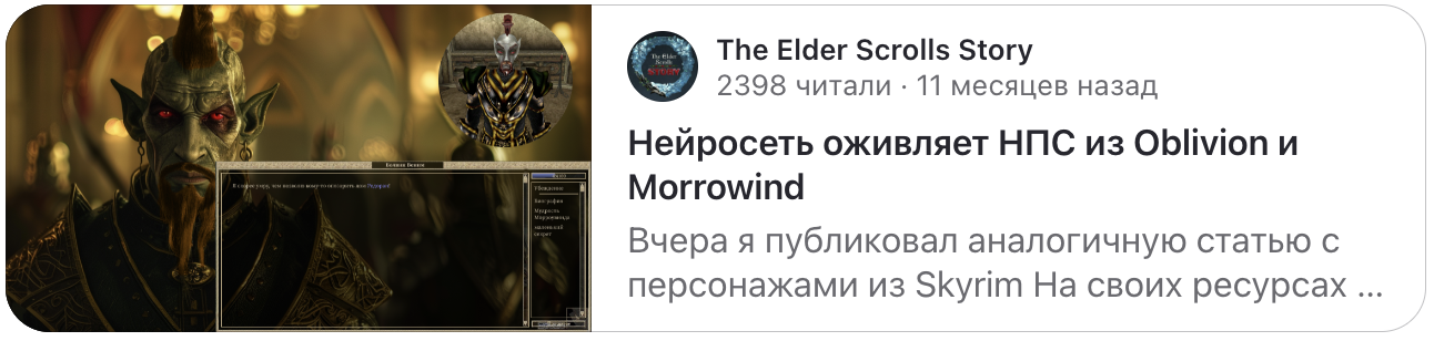 Дзен — визуальные истории и AI-эксперименты Кейс: галерея «Как сделать картинку в нейросети со своим лицом» (от популярного автора) собрала 12,8 тыс. дочитываний, при средней дочитываемости выше 55%. Секрет — визуальные вау-кадры, минимальный текст и интрига в заголовке. Другой пример — подборка «Нейросеть оживляет НПС из Oblivion и Morrowind» набрала 2398 дочитываний, потому что работала на эффект узнавания и фантазии.