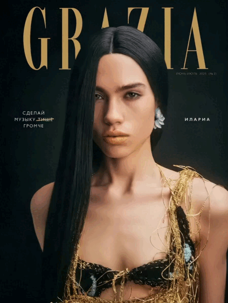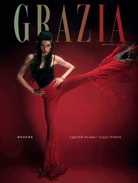 Выпуск журнала Grazia за июнь–июль 2025 года представил модель Иларию в трех различных образах на обложках номера. В съемке использовались красные брюки и золотое платье от российского бренда Vereja.