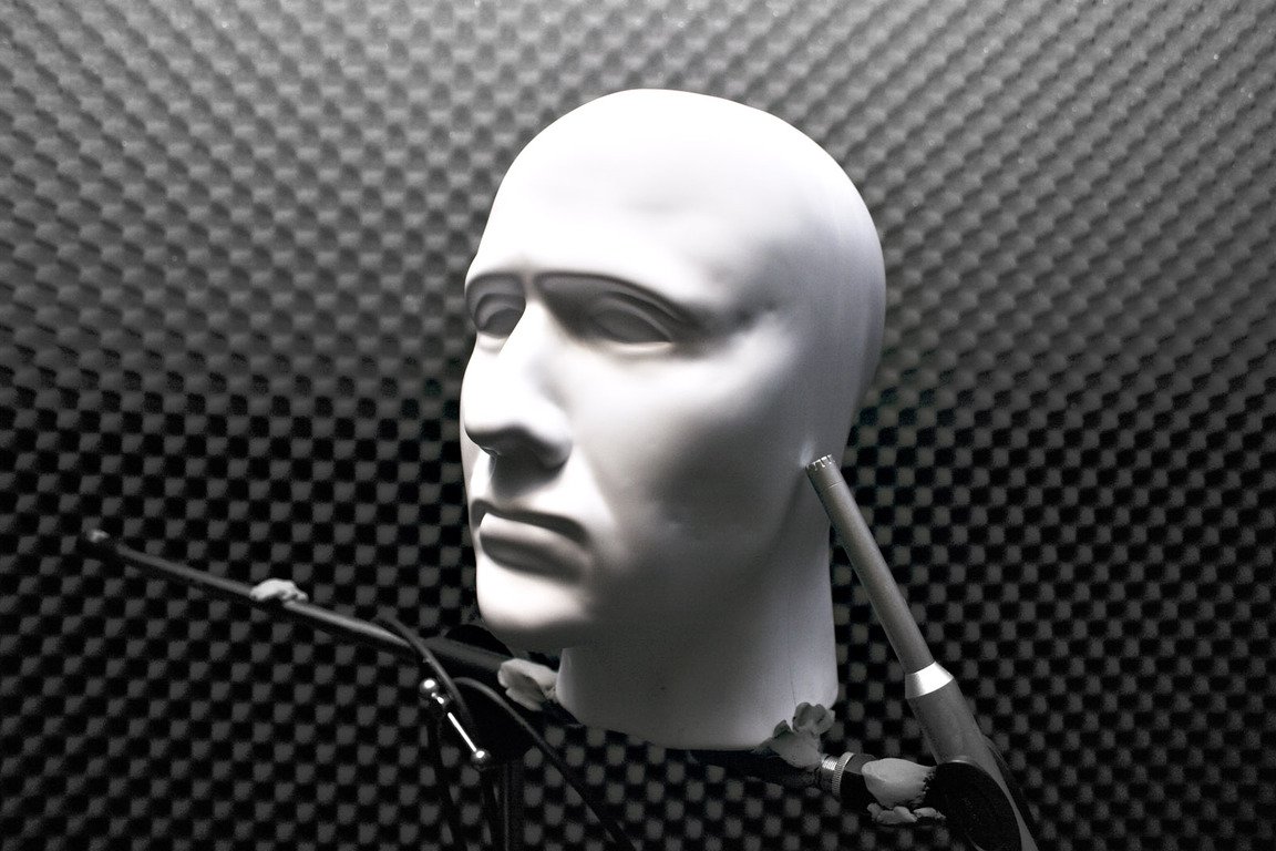 1. Бинауральные ритмы 2. Манекен для бинауральной записи; второй микрофон заслонён. 3. Микрофон для записи 3D звука