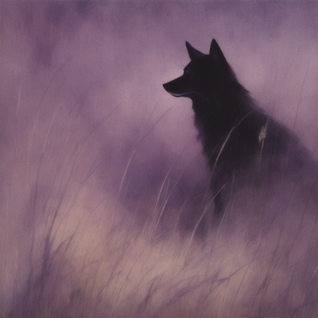 Тень волка проходит меж травинок — не животное, но присутствие. След, оставленный в сырой земле, заполняется тьмой.