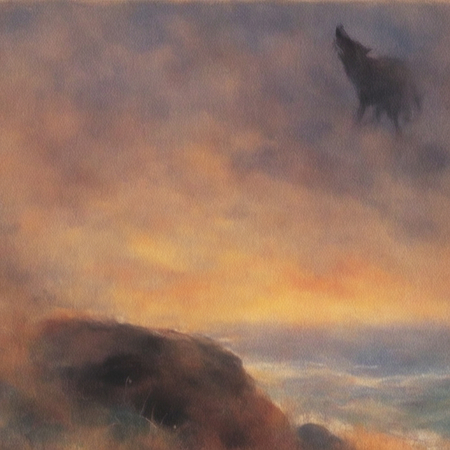 Мир светлеет, но не становится ярким. Волк стоит на утёсе, смотрит в сторону ещё невидимого солнца.