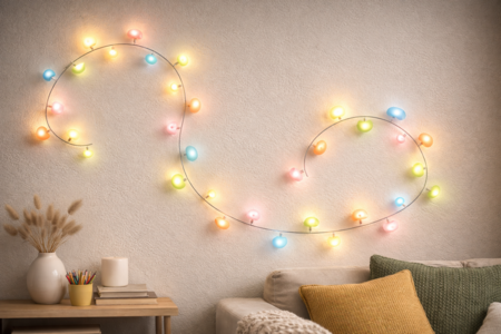 - также в комплекте с елочной игрушкой была смоделирована гирлянда из скалолазных зацепок (также светодиодных);