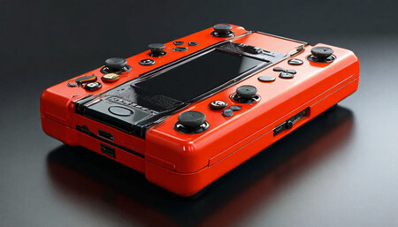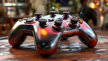 Фотореалистичное изображение (объекта). Устройство находится на выставке, посвященной необычным контроллерам и управлению. Устройство должно быть современным и минималистичным. Изображение должно выглядеть как фотография реального, полностью реализованного объекта, а не как простая визуализация.