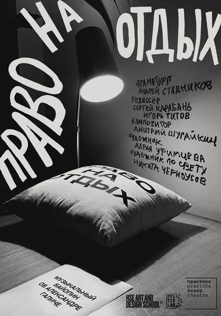 Плакат для музыкального байопика «Право на отдых». Спектакль Мастерской Брусникина в московском театре «Практика»