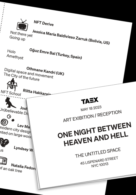 Выставка One Night Between Heaven and Hell прошла 18 мая 2023 года в Нью-Йоркской галерее The Untitled Space.